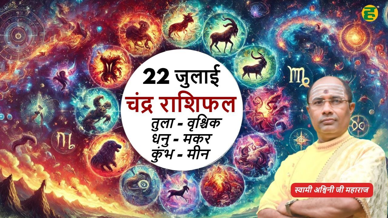 Aaj Ka rashifal: 22 जुलाई 2025 को चंद्र गोचर के प्रभाव से तुला, वृश्चिक, धनु, मकर, कुंभ और मीन राशि के जातकों के दिन में क्या बदलाव आएंगे? जानिए आज का सटीक राशिफल।