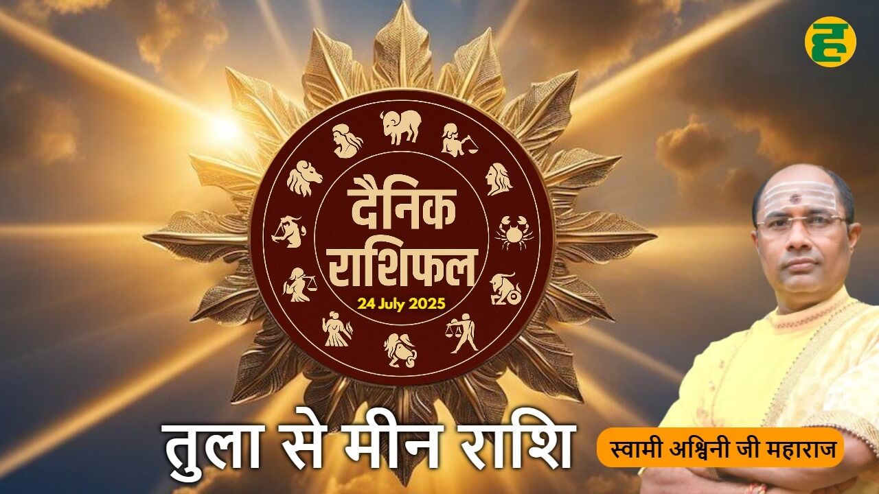 Aaj Ka rashifal: 24 जुलाई 2025 को चंद्र गोचर के प्रभाव से तुला, वृश्चिक, धनु, मकर, कुंभ और मीन राशि के जातकों के दिन में परिवर्तन होंगे? स्वामी अश्विनी जी महाराज से जानिए।