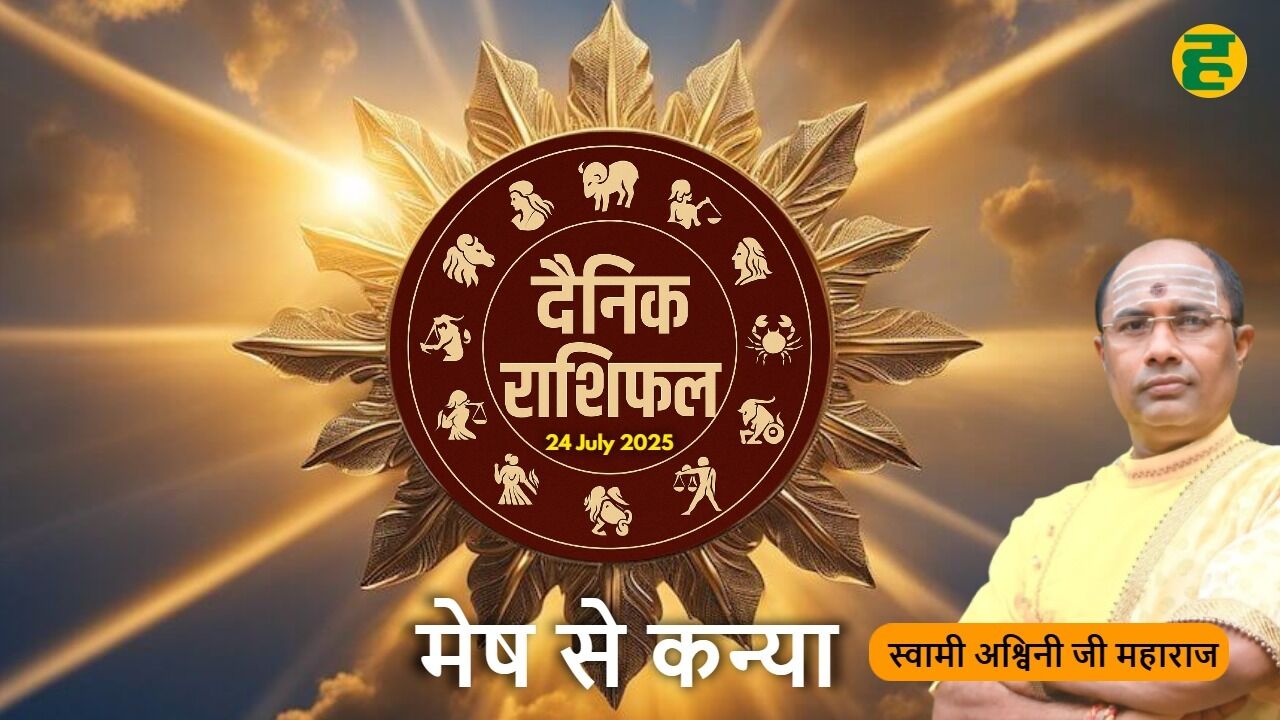 Aaj ka rashifal: 24 जुलाई 2025, गुरुवार को चंद्र गोचर के अनुसार मेष वालों का दिन ऊर्जा से भरा रहेगा। सिंह वालों को मान-सम्मान मिलेगा। वहीं कुछ राशियों का दिन चुनौतियों भरा रह सकता है। स्वामी अश्विनी जी महाराज से जानिए गुरुवार का मेष से कन्या राशि वालों का चंद्र राशिफल।