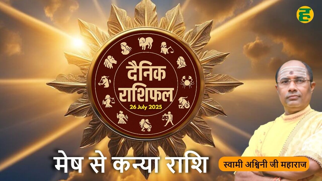 Aaj ka rashifal: 26 जुलाई 2025, शनिवार को चंद्र गोचर के अनुसार मेष राशि वालों का दिन पार्टनर के साथ बीत सकता है। कहीं यात्रा का भी प्लान बना सकते हैं। कर्क वाले अपने मार्ग से नहीं भटकें। कोई आपको परेशान करने का प्रयास कर सकता है। इसलिए अपने ऊपर ध्यान दें। स्वामी अश्विनी जी महाराज से जानिए शनिवार का मेष से कन्या राशि वालों का चंद्र राशिफल।