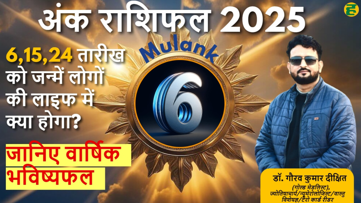 जिन जातकों का जन्म किसी भी माह की 6, 15 और 24 तारीख को होता है उनका मूलांक संख्या 6 होता है। आइए जानते हैं डॉ. गौरव कुमार दीक्षित पीएचडी (गोल्ड मेडलिस्ट),ज्योतिषाचार्य/न्यूमेरोलोजिस्ट/वास्तु विशेषज्ञ/टैरो कार्ड रीडर के माध्यम से मूलांक 6 वालों का वार्षिक भविष्यफल।