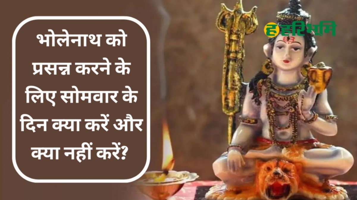 Somwar ko Kya Kare aur Kya Nahi Kare: हिंदू धर्म में हफ्ते का हर दिन किसी न किसी देवी-देवता को समर्पित है। ऐसे में आज सोमवार के दिन भगवन भोलेनाथ की पूजा करने का विधान हैं। इस दिन भोलेनाथ की विधिवत पूजा-अर्चना करने से साधकों को जीवन में कई शुभ फलों की प्राप्ति होती है। ऐसे साधकों को बिज़नेस में बढ़ोतरी देखने को मिलती है। साथ ही धन लाभ के योग भी बनते है। इसके अलावा शिव कृपा भी उनके ऊपर हमेशा बनी रहती है। सोमवार को भगवन भोलेनाथ को शीघ्र प्रसन्न करने के लिए शिवलिंग पर गन्ने के रस से अभिषेक करें और उनके निमित्त व्रत रखें। जानते है अन्य जरुरी बातें-