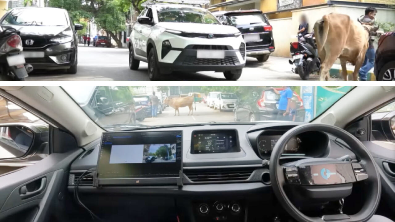 Self Driving Nexon: बिना ड्राइवर सड़क पर दौड़ रही थी टाटा की SUV, अनाचक उसके सामने आ गई 'गौ माता'