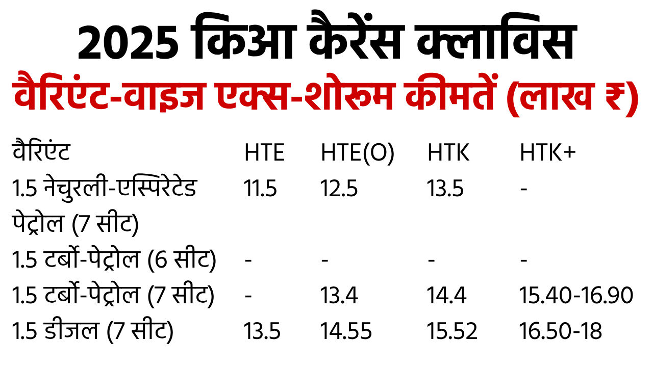 किआ मोटर्स इंडिया ने भारतीय बाजार में अपनी न्यू 2025 कैरेंस क्लाविस को लॉन्च कर दिया है। इसी MPV की शुरुआती एक्स-शोरूम कीमत 11.50 लाख रुपए तय की गई है।