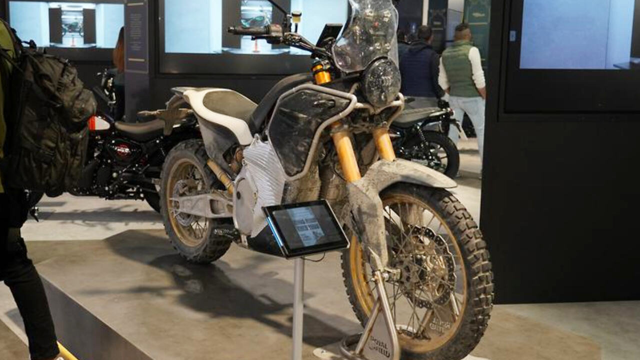 Royal Enfield Himalayan Electric Spied In Ladakh: रॉयल एनफील्ड के इलेक्ट्रिक सेगमेंट में आने की लंबे समय से चर्चा चल रही है। कंपनी ने पहली बार इटली के मिलान में 2023 EICMA शो में अपनी इलेक्ट्रिक मोटरसाइकिल को पेश भी किया था। तब कंपनी ने HIM-E नामक इलेक्ट्रिक ऑफ-रोडर का एक कच्चा प्रोटोटाइप पेश किया था। जिसे हिमालयन इलेक्ट्रिक भी कहा जा रहा है। HIM-E के बाद, रॉयल एनफील्ड ने 2024 EICMA शो में मोटरसाइकिलों की फ्लाइंग फ्ली रेंज भी पेश की थी, जिसमें FF.C6 और FF.S6 शामिल थीं। अब, ऐसा लगता है कि कंपनी ने HIM-E के प्रोडक्शन वर्जन को तैयार कर लिया है। दरअसल, इस यूनिट को लद्दाख के एक होटल में गया है। यहां रॉयल एनफील्ड का मैनेजमेंट कथित तौर पर इसकी टेस्टिंग कर रहा था।