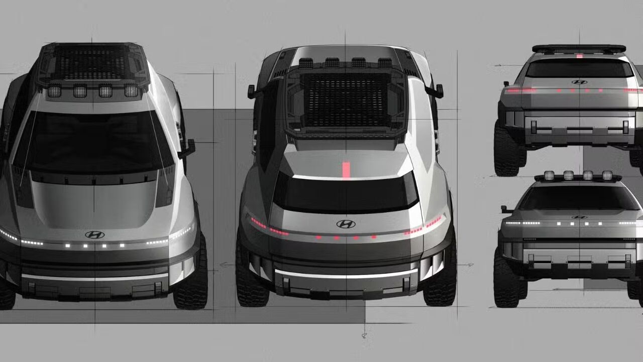 Hyundai द्वारा जारी स्केच इसके रग्ड और एडवेंचर-फोकस्ड डिजाइन को उजागर करते हैं। यह एक शो व्हीकल है, जिसे Hyundai America Technical Center (HATCI), इरविन (कैलिफोर्निया) में विकसित किया गया है। Crater Concept को इस तरह डिजाइन किया गया है कि यह Hyundai की XRT लाइनअप—जैसे Ioniq 5 XRT, Santa Cruz XRT और नई Palisade XRT Pro—की ऑफ-रोड DNA को और मज़बूत करे।