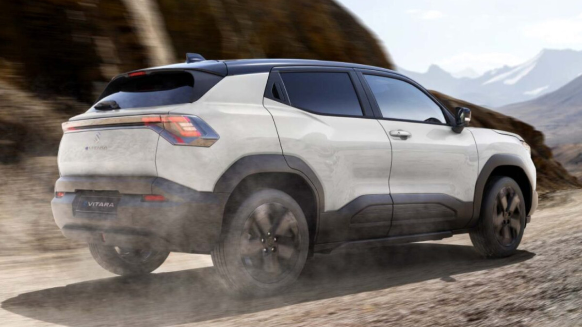 >> मारुति सुजुकी ई-विटारा को 10 एक्सटीरियर कलर ऑप्शन के साथ पेश करेगी। इसमें 6 मोनो-टोन और 4 डुअल-टोन कलर शामिल हैं। 6 सिंगल-टोन कलर ऑप्शन में नेक्सा ब्लू, स्प्लेंडिड सिल्वर, आर्कटिक व्हाइट, ग्रैंड्योर ग्रे, ब्लूइश ब्लैक और ऑपुलेंट रेड शामिल हैं। वहीं, डुअल-टोन कलर में ब्लैक रूफ और ए-पिलर और बी-पिलर मिलेंगे। साथ ही, कंट्रास्टिंग आर्कटिक व्हाइट, लैंड ब्रीज ग्रीन, स्प्लेंडिड सिल्वर और ऑपुलेंट रेड कलर ऑप्शन शामिल होंगे।