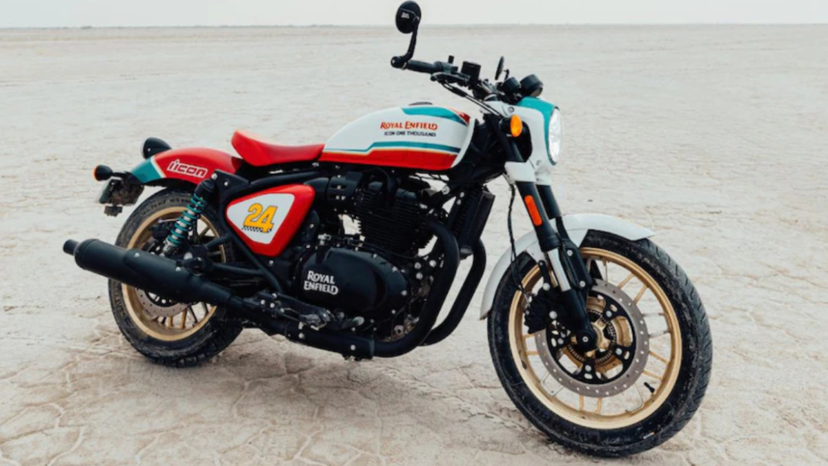 Royal Enfield Shotgun 650 Icon Edition Sold Out: रॉयल एनफील्ड ने शॉटगन 650 का स्पेशल आइकॉन एडिशन की सभी यूनिट सोल्ड आउट कर दी हैं। इसे यूएस-बेस्ड कस्टम मोटरसाइकिल मैन्युफैक्चर ICON मोटोस्पोर्ट्स के सहयोग से तैयार किया गया है। यह लिमिटेड एडिशन स्पेशल एलिमेंट के साथ आता है। खास बात ये है कि इस मोटरसाइकिल की दुनियाभर में सिर्फ 100 यूनिट ही बेची जाएंगी। इसमें से भारत में सिर्फ 25 यूनिट बेची जानी थी। इसकी एक्स-शोरूम कीमत 4.25 लाख रुपए है। ये स्टैंडर्ड मॉडल से लगभग 65,000 रुपए महंगी है।