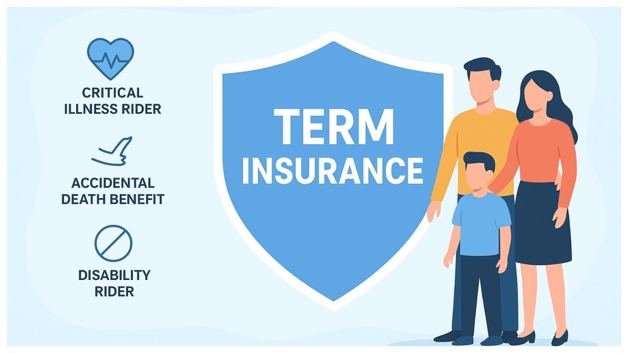 Term insurance tips: टर्म इंश्योरेंस कम प्रीमियम में बड़ा कवरेज देता है। क्रिटिकल इलनेस और एक्सीडेंटल राइडर्स इसे और मजबूत बनाते हैं।
