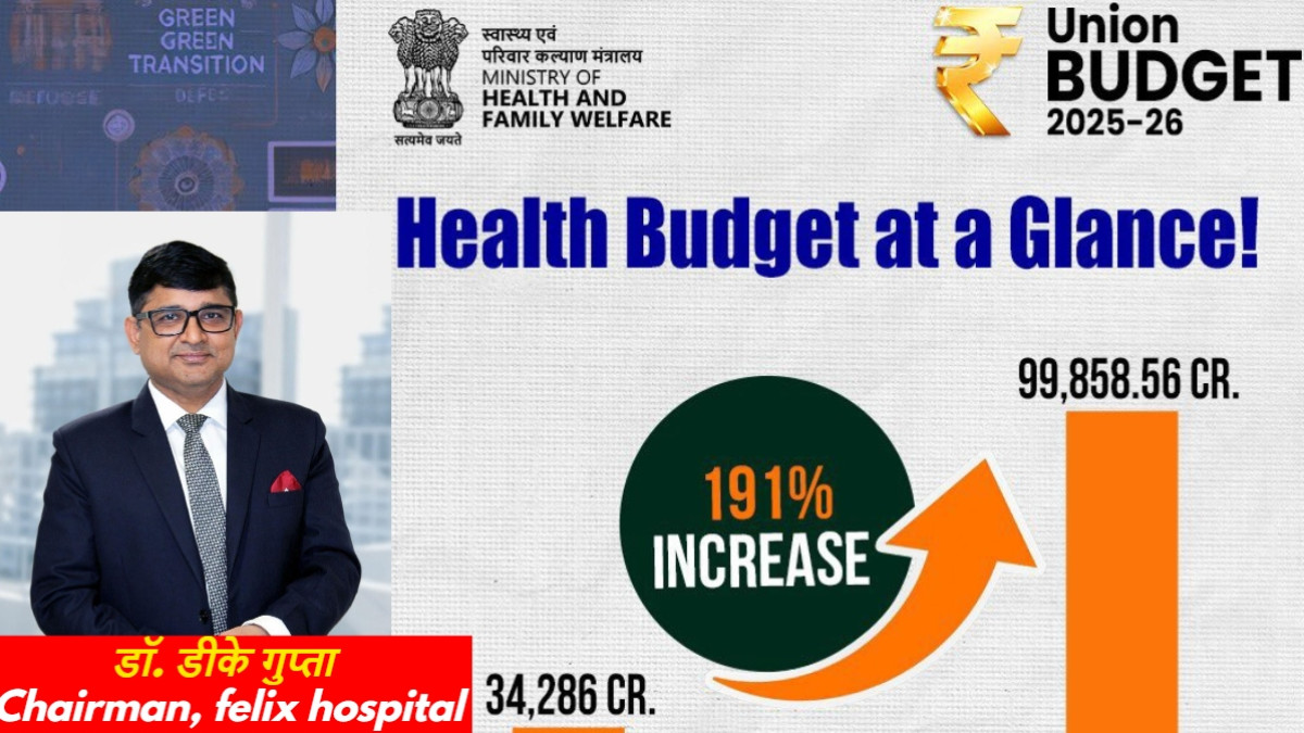 फेलिक्स हॉस्पिटल के चेयरमैन डॉ. डीके गुप्ता ने कहा कि यह बजट भारत के हेल्थ इंफ्रास्ट्रक्चर को मजबूत करने में मील का पत्थर साबित होगा। सरकार द्वारा उठाए गए कदमों से लोगों को सस्ती और बेहतर चिकित्सा सुविधाएं मिलेंगी।
