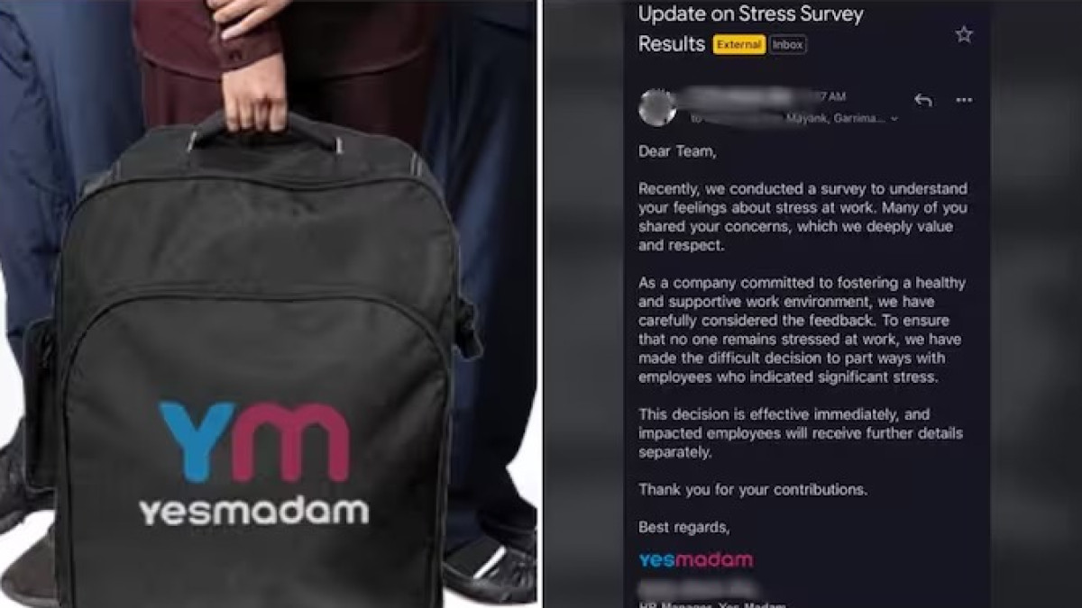 YesMadam ने हाल ही में कर्मचारियों से उनके कामकाजी तनाव को लेकर एक सर्वे किया। वायरल ईमेल के मुताबिक, कंपनी ने अपने कर्मचारियों से पूछा कि क्या वे काम पर तनाव का सामना कर रहे हैं? आरोप है कि सर्वे में जिन कर्मचारियों ने "अत्यधिक तनाव" की बात कही, उन्हें तुरंत नौकरी से निकाल दिया गया।