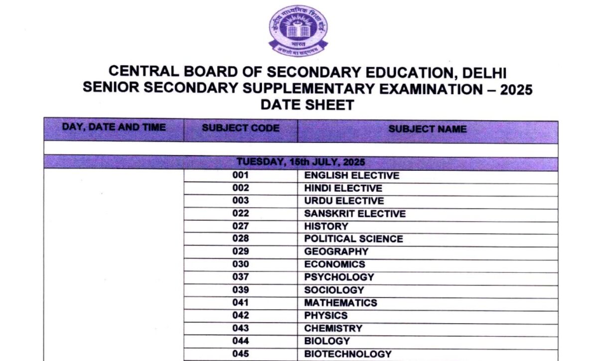 CBSE Supplementary Exam 2025: 15 जुलाई से शुरू होंगी कक्षा 10वीं और 12वीं की सप्लीमेंट्री परीक्षाएं, यहां देखें पूरी डेटशीट