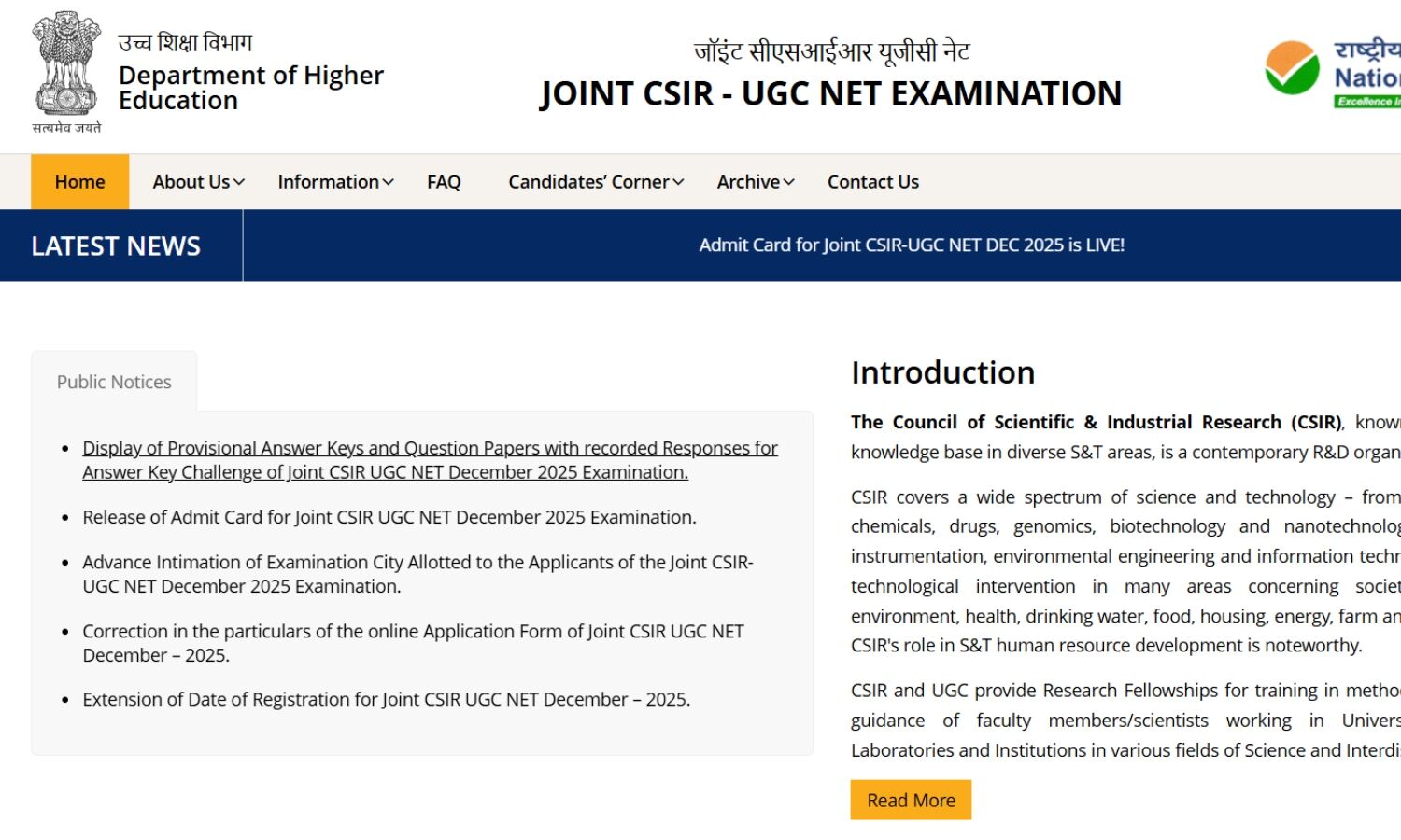 - होमपेज पर 'Provisional Answer Key – CSIR NET December 2025' लिंक पर क्लिक करें।
