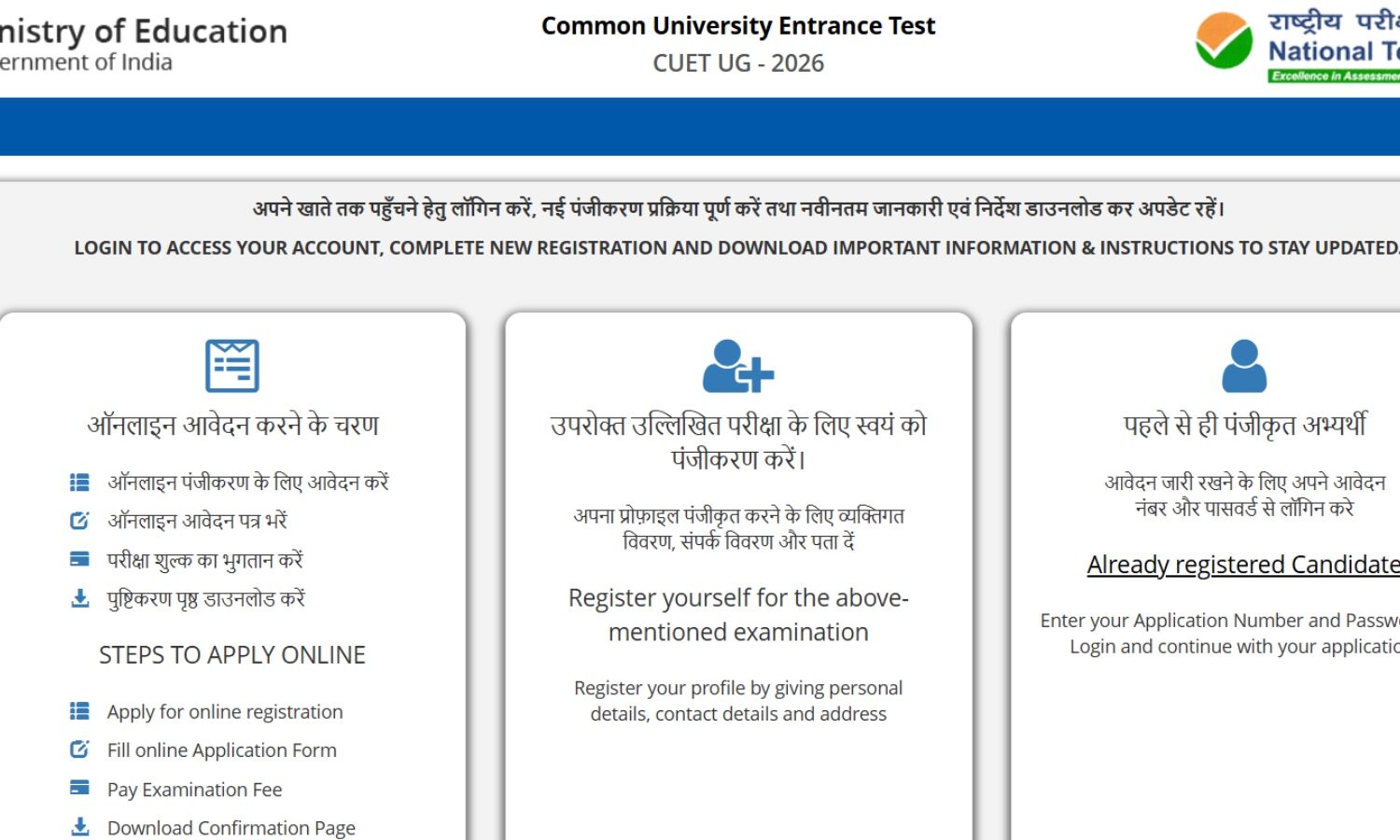 उम्मीदवारों को सलाह दी जाती है कि CUET UG 2026 से जुड़ी किसी भी नई अपडेट या बदलाव के लिए नियमित रूप से NTA की आधिकारिक वेबसाइट चेक करते रहें।