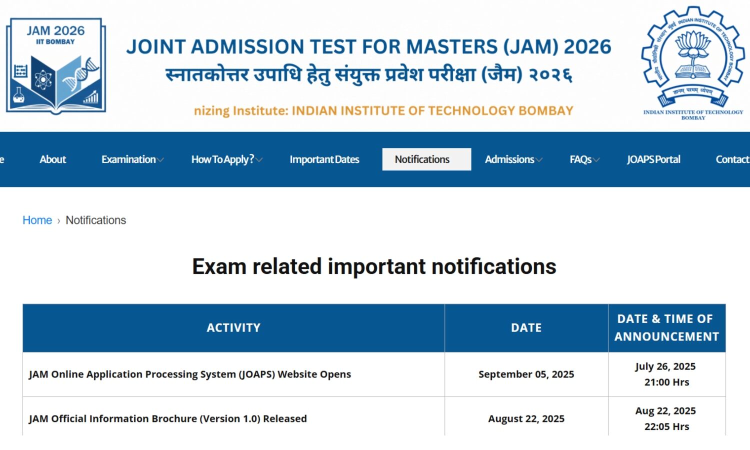 - सबसे पहले आधिकारिक वेबसाइट jam2026.iitb.ac.in पर जाएं।