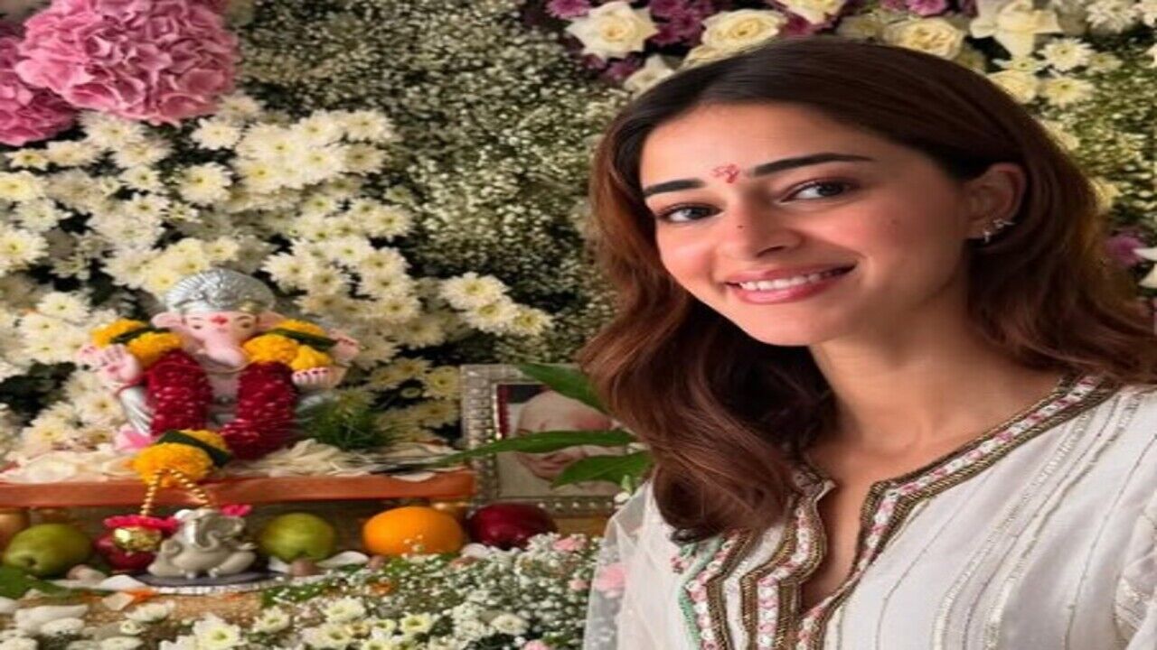 Ananya Panday: गणेश चतुर्थी पर बॉलीवुड सितारों ने पारंपरिक अंदाज़ में बप्पा का स्वागत किया। इसी बीच एक्ट्रेस अनन्या पांडे ने सफेद रंग का खूबसूरत सूट पहना।