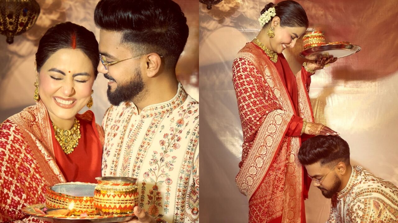 एक्ट्रेस हिना खान ने पति रॉकी जयसवाल संग मनाया पहला करवा चौथ, शेयर की खूबसूरत तस्वीरें।