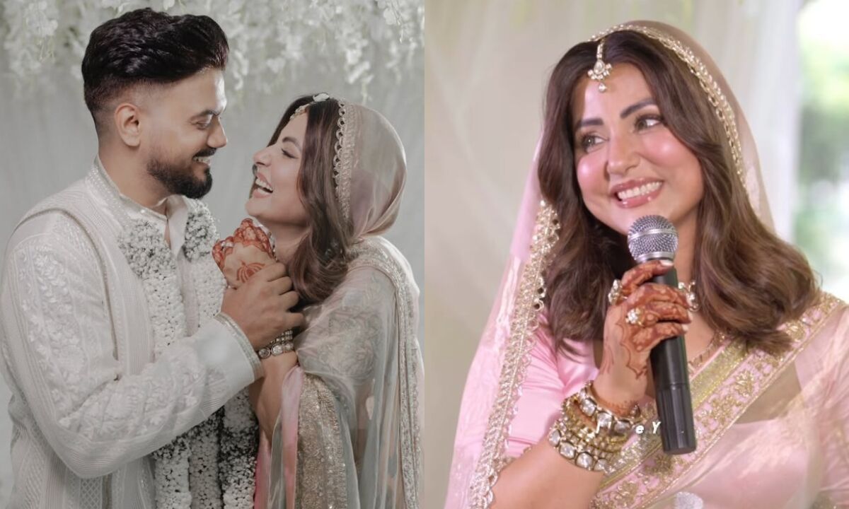 Hina Khan Video: टीवी इंडस्ट्री की लोकप्रिय अदाकारा हिना खान ने बुधवार 4 जून को अपने लॉन्ग टाइम बॉयफ्रेंड रॉकी जायसवाल के साथ शादी रचा ली है। नएनवेले कपल की शादी की तस्वीरें सोशल मीडिया पर खूब सुर्खियां बटोर रही हैं। हिना और रॉकी ने शादी के इस पवित्र अवसर पर अपनी भावनाएं खुलकर साझा कीं, जिसका वीडियो अब सोशल मीडिया पर तेजी से वायरल हो रहा है।