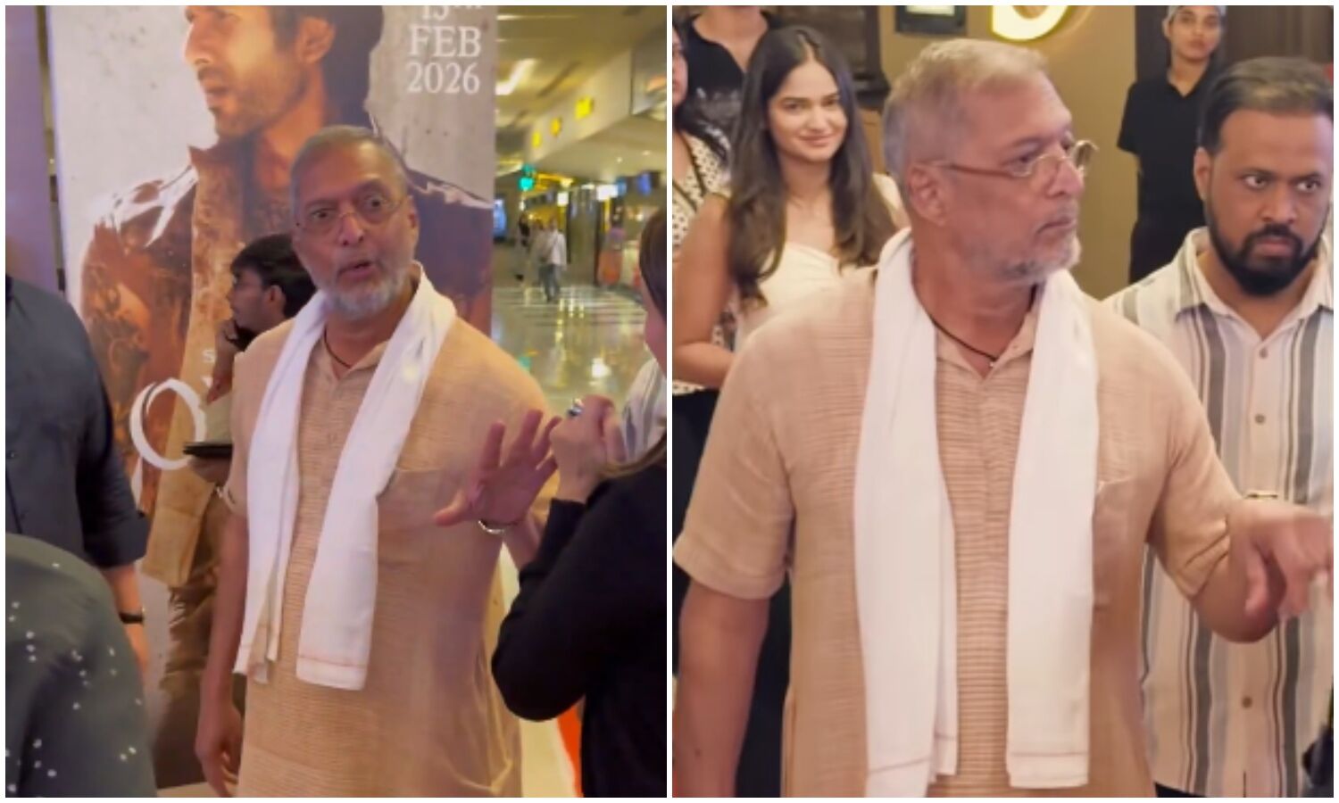 बताया जा रहा है कि नाना पाटेकर दोपहर 12 बजे मुंबई के एक मल्टीप्लेक्स में आयोजित इस इवेंट में पहुंच चुके थे, जहां मीडिया भी मौजूद थी। जब तय समय तक फिल्म के अन्य कलाकार नहीं पहुंचे, तो नाना नाराज़ हो गए। सोशल मीडिया पर सामने आए एक वीडियो में उन्हें ऑडिटोरियम से बाहर निकलते हुए देखा जा सकता है। इस दौरान वे अपनी घड़ी की ओर इशारा करते हुए आयोजकों से कुछ कहते नजर आते हैं और उन्हें रोकने की कोशिशों के बावजूद लिफ्ट की ओर बढ़ जाते हैं। एक अन्य क्लिप में वे साफ तौर पर ‘ना’ का इशारा करते दिखाई देते हैं।