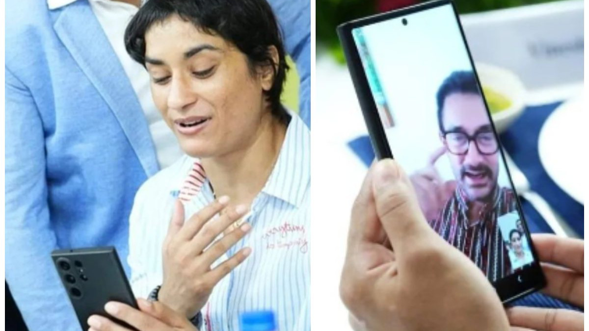 इसी बीच सोशल मीडिया पर एक तस्वीर वायरल हो रही है, जिसमें बॉलीवुड के मिस्टर परफेक्शनिस्ट आमिर खान विनेश फोगाट से वीडियो कॉल पर बात करते हुए दिख रहे हैं।