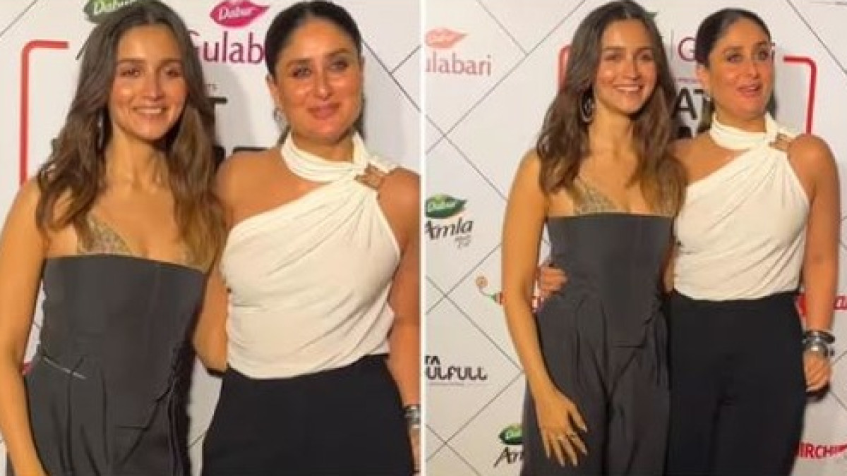 बॉलीवुड की दो मशहूर अदाकाराएं, आलिया भट्ट और करीना कपूर, एक इवेंट के दौरान साथ में नजर आईं हैं। दोनों एक-दूसरे से बातचीत करती और कैमरे के लिए पोज़ देती दिखाई दी हैं।