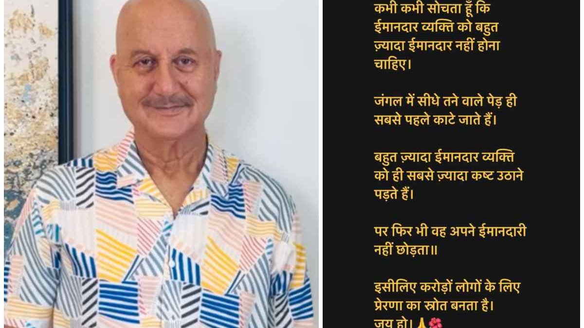 अनुपम खेर इस पोस्ट को शेयर करते हुए लिखा, ''कभी कभी सोचता हूं कि ईमानदार व्यक्ति को बहुत ज्यादा ईमानदार नहीं होना चाहिए। जंगल में सीधे तने वाले पेड़ ही सबसे पहले काटे जाते हैं। बहुत ईमानदार व्यक्ति को ही सबसे ज्यादा कष्ट उठाने पड़ते हैं। पर फिर भी वह अपनी ईमानदारी नहीं छोड़ता। इसलिए करोड़ों लोगों के लिए प्रेरणा का स्त्रोत बनता है।''