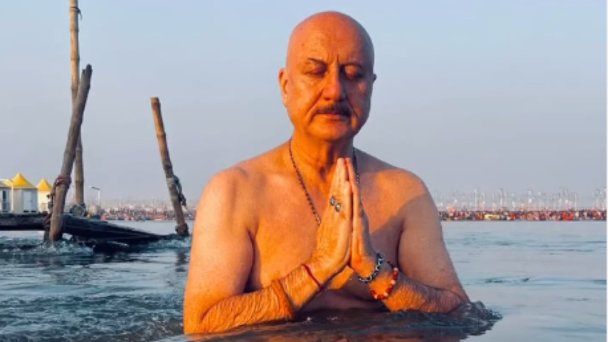 संगम स्नान कर भावुक हुए अनुपम खेर