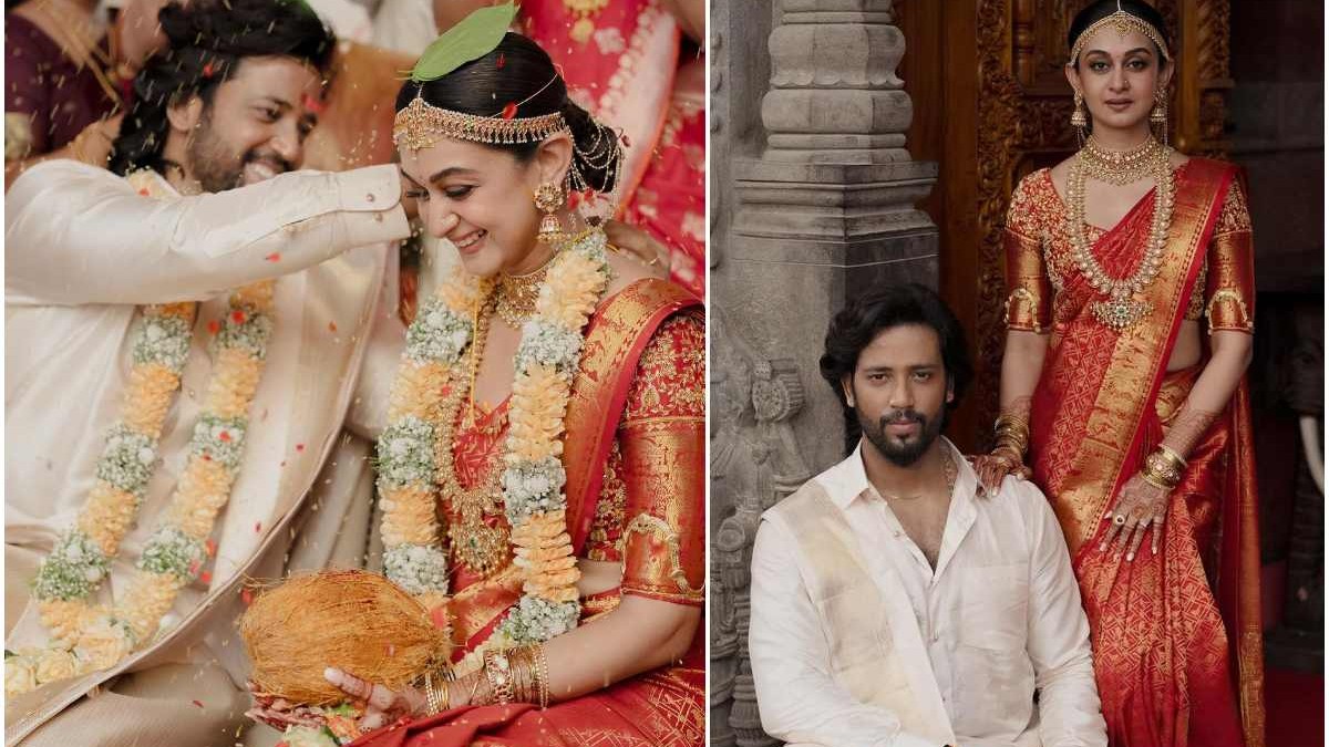 ऐश्वर्या अर्जुन ने अपने इंस्टाग्राम अकाउंट पर शादी की तस्वीरें शेयर की हैं। लाल रंग के जोड़े में एक्ट्रेस खूबसूरत दुल्हन बनीं दिख रही हैं।