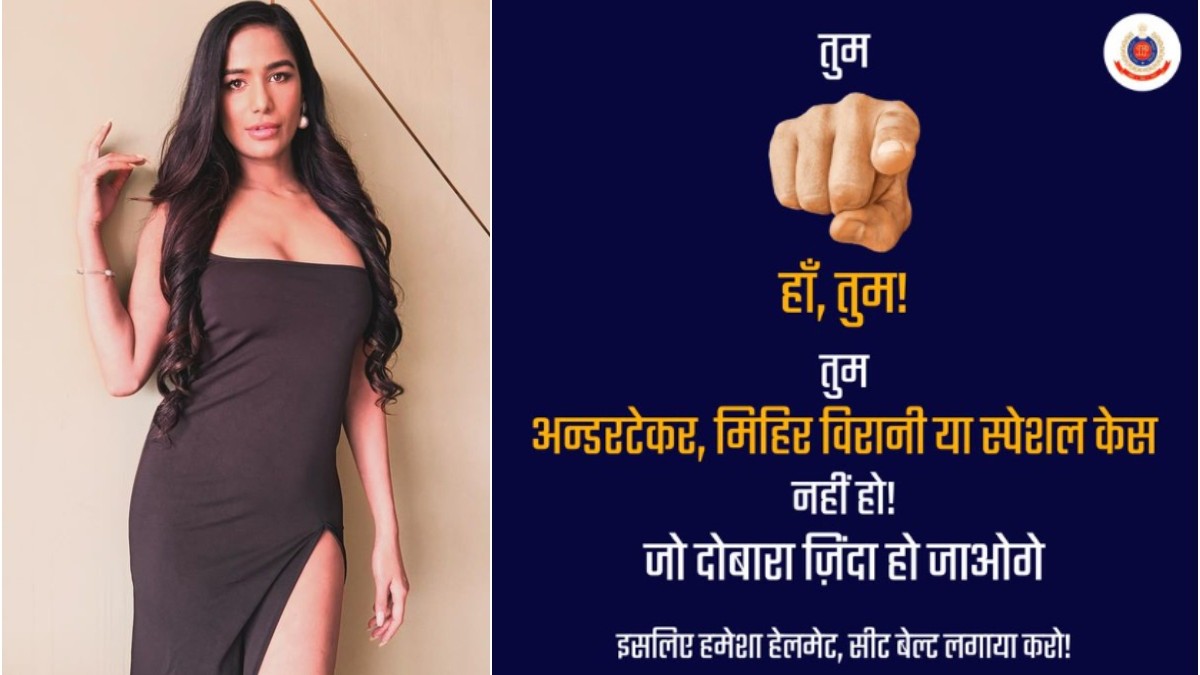 वहीं अब दिल्ली पुलिस ने एक मजेदार पोस्ट शेयर कर लोगों को खास सलाह दी है। जिसे देखने के बाद ऐसा माना जा रहा है कि दिल्ली पुलिस ने पूनम पांडे को कनेक्ट करते हुए यह पोस्ट शेयर किया है। वहीं दिल्ली पुलिस ने अपने ऑफिशियल अकाउंट पर इस पोस्ट को साझा करते हुए कैप्शन दिया, 'हां हां, इधर-उधर मत देखो, तुम्हारी ही बात हो रही है।' वहीं फोटो के ऊपर टेक्स्ट लिखा है, 'तुम.. हां तुम! तुम अंडरटेकर, मिहिर विरानी या स्पेशल केस नहीं हो! जो दोबारा जिंदा हो जाओगे, इसलिए हमेश हेलमेट, सीट बेल्ट लगाया करो।'