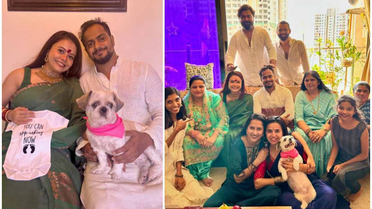 दरअसल, बीते दिन यानी गुरुवार रात देवोलिना ने अपने इंस्टाग्राम अकाउंट पर कुछ फोटोज शेयर की है। जिसमें एक्ट्रेस और उनके पति संग उनका पूरा परिवार और सीरियल 'साथ निभाना साथिया' की को-स्टार भी नजर आ रही हैं। एक्ट्रेस की ये फोटोज उनके घर पर हुई जश्न या पूजा की है। वहीं पहली तस्वीर में देवोलीना अपने पति के साथ बैठी दिखाई दे रही हैं। इस दौरान उनके हाथ में एक छोटे बच्चे का कपड़ा नजर आ रहा हैं और उसपर लिखा है कि 'अब पूछना बंद कर दीजिए।' इसके अलावा तस्वीर में उनका डॉग भी दिखाई दे रहा है।