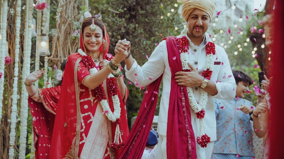 तस्वीरों में दीया के पति वैभव रेखी वाइट कलर की शेरवानी और सिर पर गोल्डन पगड़ी पहने नजर आ रहे हैं। तो वहीं दीया मिर्जा भी लाल रंग की बनारसी साड़ी में दुल्हन बनी दिख रही हैं।