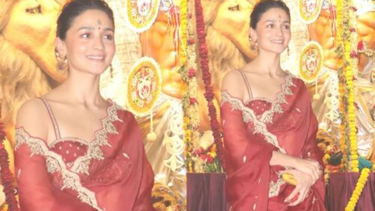 Alia Bhatt Durga Puja Look : करवाचौथ पर आलिया की लाल साड़ी और मार्डन ब्लाउज को पहन कर देखें, हर कोई करेगा तारीफ
