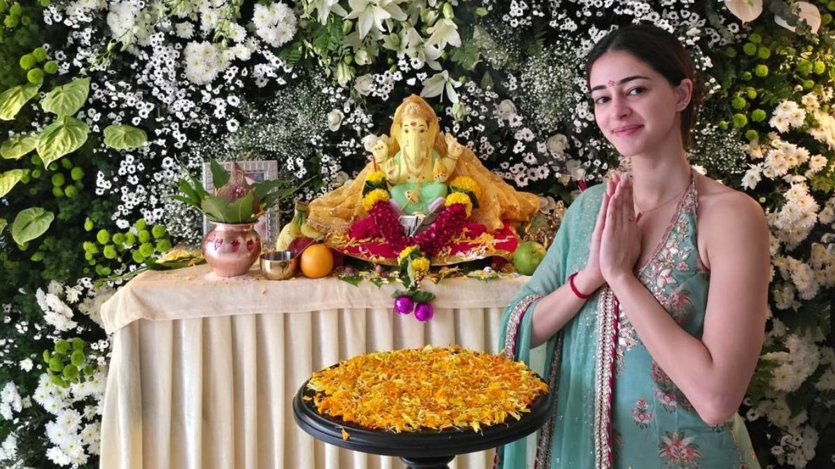 हर साल की तरह इस बार भी पांडे परिवार ने भगवान गणेश का अपने घर में भव्य स्वागत किया। बॉलीवुड एक्ट्रेस अनन्या पांडे ने सी-ग्रीन शरारा सेट पहना, जिसे गोपी वैद डिजाइंस द्वारा डिजाइन किया गया था। अनन्या अपने माता-पिता, चंकी पांडे और भावना पांडे के साथ अपने दादा-दादी के साथ तस्वीरें भी लीं।