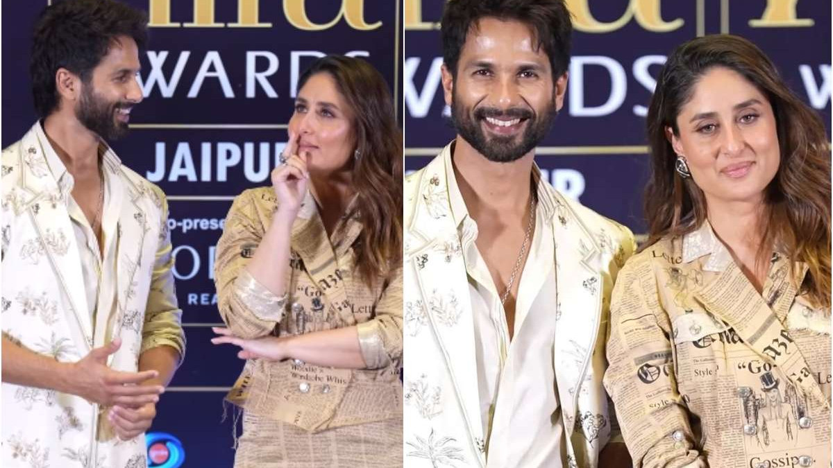 उनके आसपास स्टेज पर करण जौहर, बॉबी देओल और कार्तिक आर्यन भी मौजूद रहे। हालांकि सारी लाइमलाइट करीना और शाहिद ने लूट ली। इसके वीडियो सोशल मीडिया पर आग की तरह वायरल हो रहे हैं। लुक की बात करें शाहिद ने फ्लोरल प्रिंट का ब्लेजर-जैके पहना हुआ था, वहीं करीना कपूर न्यूजपेपर प्रिंट के स्कर्ट-टॉप वाले को-ऑर्ड सेट आउटफिट में बेहद स्टाइलिश लगीं।