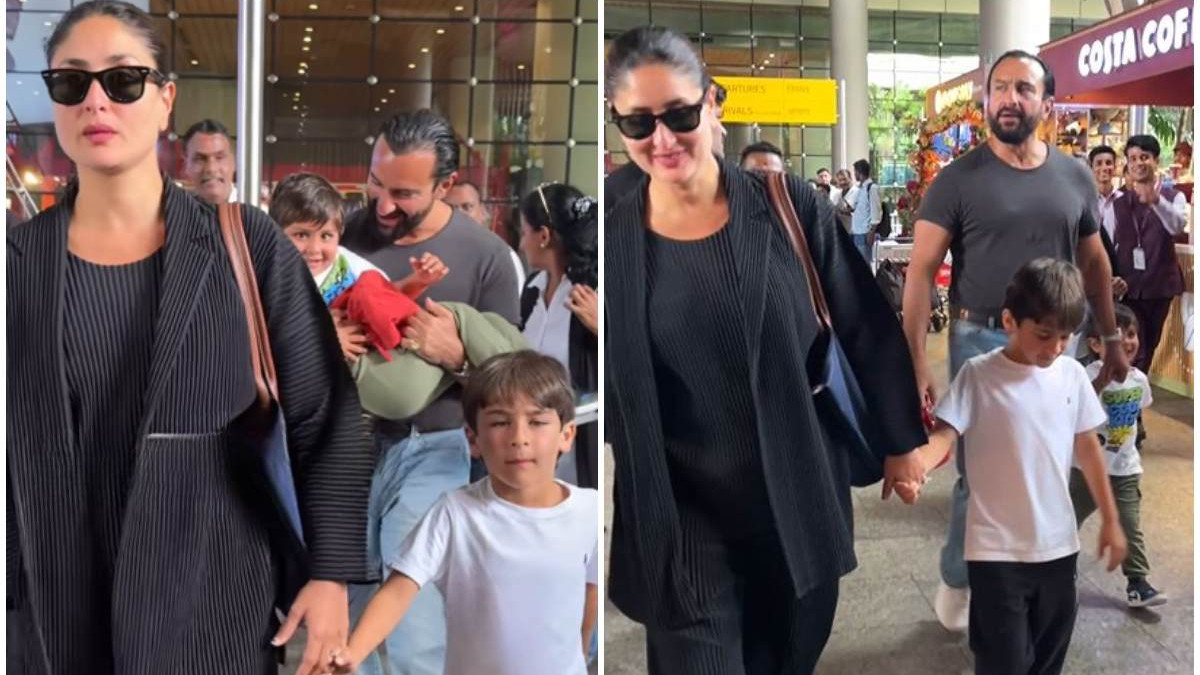 एक्ट्रेस ऑल ब्लैक आउटिफिट में बेहद गॉर्जियस लग रही थीं। सैफ ग्रे-टी शर्ट और डेनिम में दिखे, और दोनों बच्चे वाइट टी-शर्ट पहने स्पॉट हुए। एयरपोर्ट पर सैफ अली खान और करीना कपूर ने पैपराजी को हंसते हुए पोज दिए और कार की ओर बढ़ते दिखे। इस दौरान करीना बेटे तैमूर का हाथ थामे दिखीं, तो वहीं सैफ अली खान अपने लाडले बेटे जेह को गोद में उठाकर मस्ती करते नजर आए। पूरी फैमिली वेकेन मोड में नजर आ रही है।