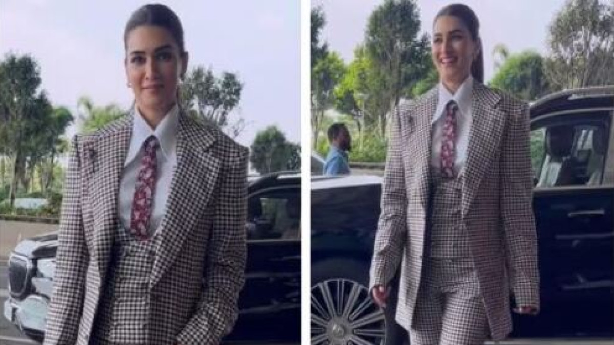 कृति ने इस एयरपोर्ट लुक के लिए ट्रेडिशनल और आरामदायक आउटफिट्स से हटकर एक फॉर्मल, लेकिन स्टाइलिश लुक को चुना, उन्होंने गिंगम चेक पैटर्न वाले सूट को बड़े आत्मविश्वास और सहजता के साथ कैरी किया। यह लुक उनके फैशन सेंस का बेहतरीन उदाहरण है, जो दिखाता है कि फॉर्मल कपड़े कैसे कैज़ुअल सेटिंग्स में भी परफेक्ट लग सकते हैं।