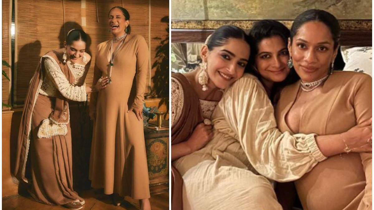 सोनम कपूर ने भी इस सेरेमनी से अपनी तस्वीरें शेयर की हैं। इसके अलावा उन्होंने मसाबा के साथ अपनी पिक्चर्स शेयर कीं। टू बी मॉम मसाबा ब्राउन कलर की वन पीस लॉन्ग ड्रेस में नजर आ रही हैं। सोनम भी ब्राउन और वाइट कलर की वेस्टर्न साड़ी लुक में नजर आईं। उन्होंने साड़ी के साथ वाइट क्रोशिया टॉप कैरी किया था, इसके साथ बाल और बाकी एक्सेसरीज को भी क्रोशिया वर्क वाली ज्वेलेरी से मैच किया।