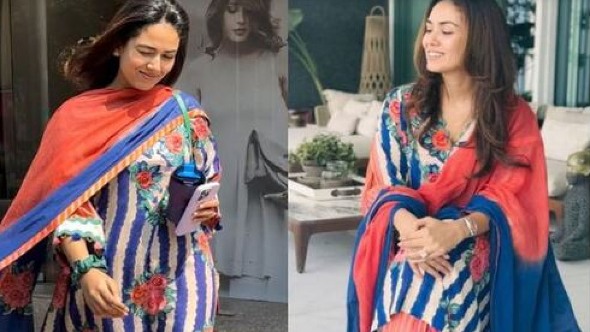 आमतौर पर वेस्टर्न और कूल स्टाइल में नजर आने वाली मीरा जैसे ही सेलून से निकली, वैसे ही कुर्ता सेट में नजर आईं।
