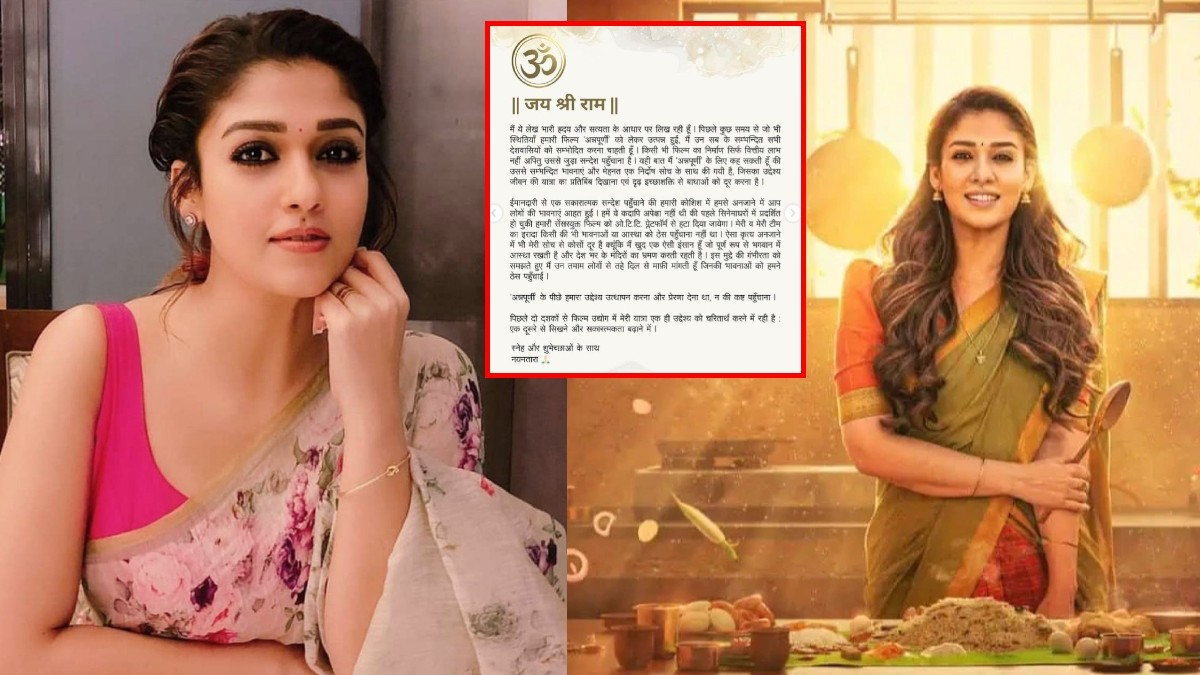 इस फिल्म को लेकर एफआईआर तक दर्ज हो गई थी। वहीं अब इस पूरे मामले में फिल्म की लीड एक्ट्रेस नयनतारा ने 'अन्नपूर्णानी' पर हुए विवाद के लिए माफी मांगी है। एक्ट्रेस ने कहा है कि उनका और उनकी टीम का इरादा किसी की भावनाओं को ठेस पहुंचाने का नहीं था।