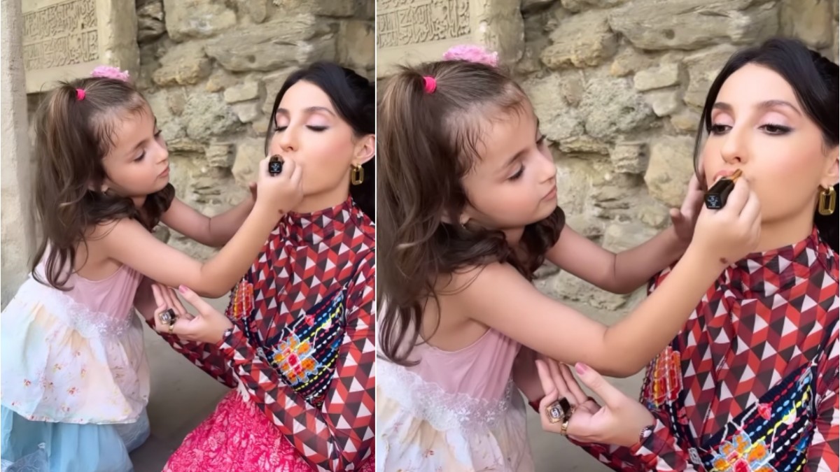 Nora Fatehi: क्यूट बच्ची ने नोरा फतेही के होठों पर लगाई लिपस्टिक, देखें वीडियो