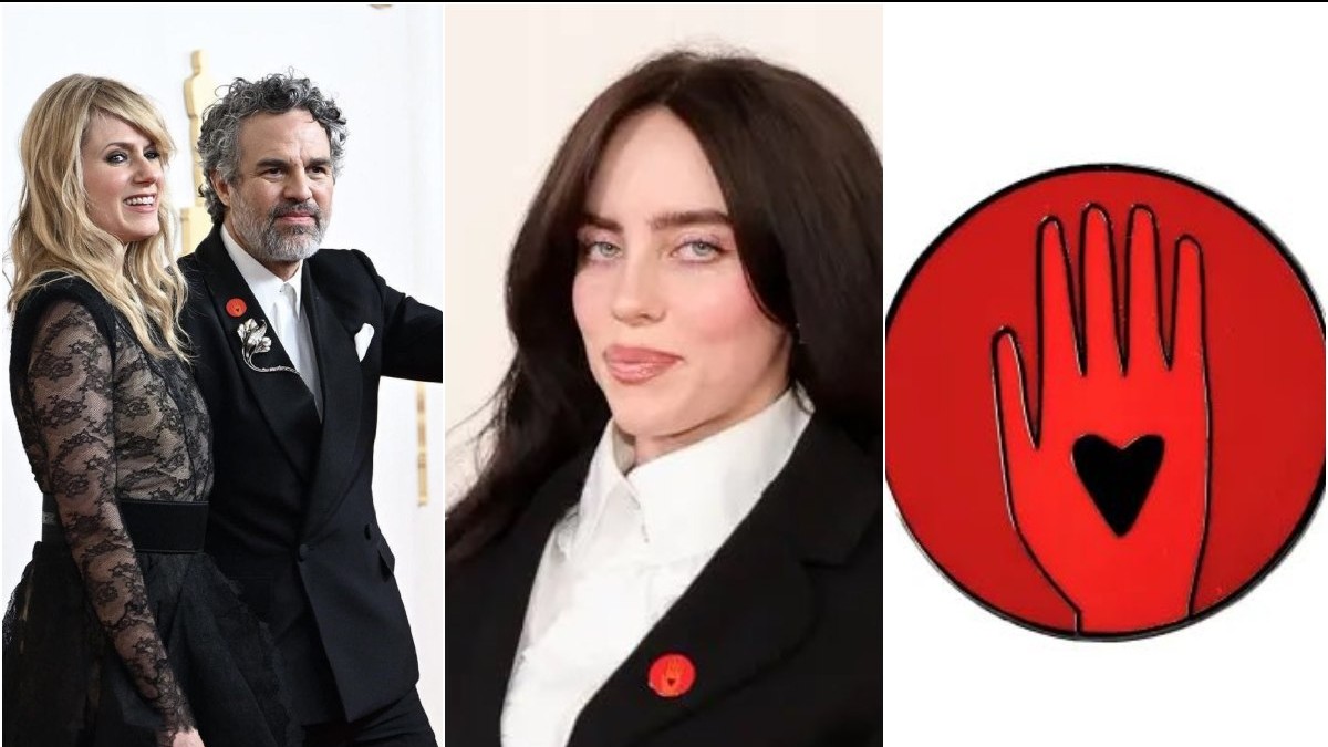 Oscars 2024: लॉस एंजिलिस के डॉल्बी थिएटर में सोमवार को 96वें ऑस्कर अवॉर्ड्स का ऐलान हो गया। इस दौरान बिली इलिश, फिनीस, मार्क रफालो, एवा डुवर्ने और रेमी यूसुफ जैसी कई हस्तियां रेड कार्पेट पर छोटे लाल पिन पहने हुए दिखाई दीं। इनमें एक हाथ बना था, जिसकी हथेली पर एक काला दिल था। जैसे यह फोटोज वायरल हुए तो लोगों के मन में सवाल उठा कि इसका मतलब क्या है?