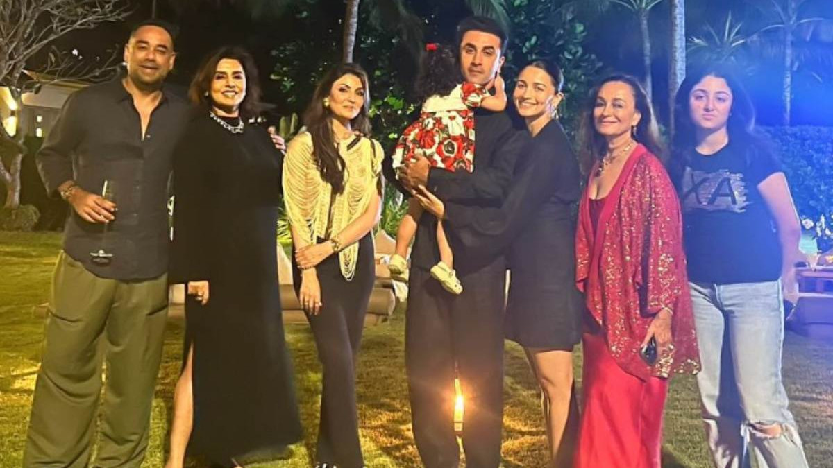 अभिनेत्री नीतू कपूर ने न्यू ईयर सेलिब्रेशन की तस्वीरें अपनमे इंस्टाग्राम पर शेयर की हैं। तस्वीरों में उनकी बेटी रिद्धिमा साहनी, नातिन समायरा, रणबीर-आलिया, सोनी राजदान समेत परिवार के सदस्य नजर आ रहे हैं। फोटो में रणबीर अपनी प्यारी बेटी राहा को गोदी में बैठाकर पोज देते दिखे, तो वहीं आलिया भट्ट को ब्लैक कलर के आउटफिट में रणबीर के साथ ट्विनिंग करते देखा जा सकता है।