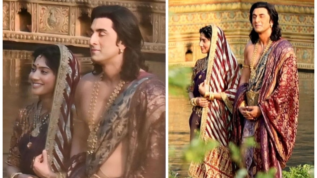 सेट से लीक हुईं इन तस्वीरों में पहली बार रणबीर कपूर राम के लुक में नजर आ रहे हैं। उन्होंने पर्पल और वाइन कलर का पौराणिक लिबाज़ पहना है और गले-बाजू पर स्वर्ण आभूषण पहन रखे हैं। उनके माथे पर तिलक है, कानों में कुंडल और लंबे बालों वाला लुक है। तो वहीं उनके बगल में खड़ीं एक्ट्रेस साई पल्लवी उसी कॉन्ट्रास्ट के कॉस्ट्यूम में नजर आ रही हैं। उनके चेहरे पर सादगी और मुस्कान झलक रही है। ये तस्वीरें किसी घाट या महल के बाहर की प्रतीत हो रही हैं जिसके लिए मुंबई में ही एक ग्रैंड सेट बनाया गया है। मुंबई में ही फिल्म की शूटिंग चल रही है। अब रणबीर कपूर और साई पल्लवी की ये फोटोज सोशल मीडिया पर तेजी से तहलका मचा रही हैं।