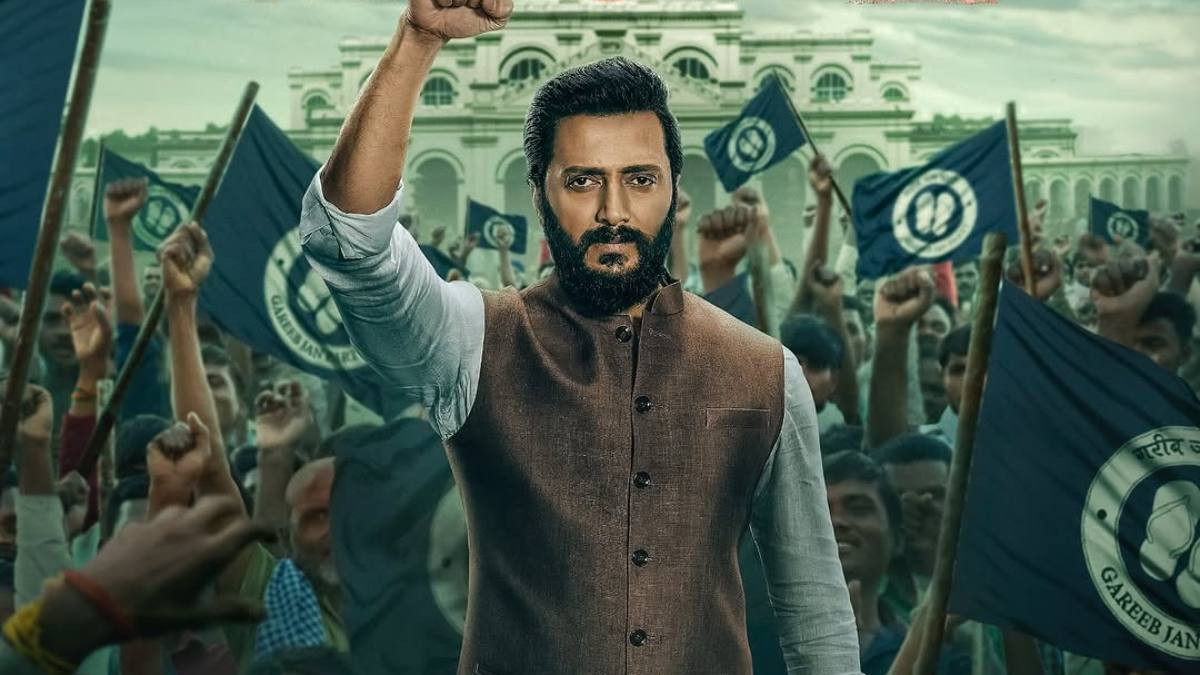 पोस्टर में रितेश देशमुख लोगों के बीच खड़े सफेद कुर्ता और डार्क ब्राउन नेहरू जैकेट पहने एक हाथ ऊपर उठाए नजर आ रहे हैं। उनके पास खड़े लोग अपने हाथों में पार्टी का झंडा लिए हुए हैं।