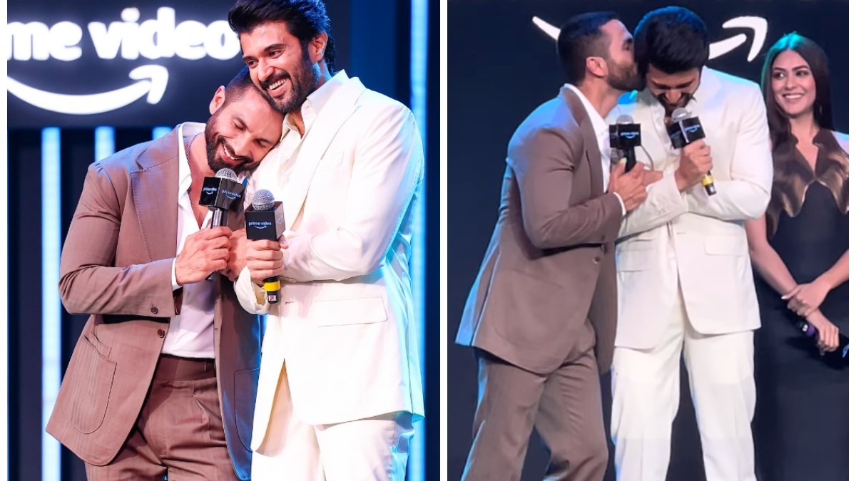 दरअसल बीते दिन अमेजन प्राइम वीडियो 2024 टाइटल अनाउंसमेंट इवेंट का आयोजन हुआ था जिसमें शाहिद कपूर, मृणाल ठाकुर, वरुण धवन, सिद्धार्थ मल्होत्रा, विजय देवरकोंडा, ऋषभ शेट्टी समेत कई सितारे पहुंचे थे। इस दौरान शाहिद कपूर और विजय देवरकोंडा ने काफी लाइमलाइट लूटी। दोनों स्टार्स का एक वीडियो सोशल मीडिया पर जमकर वायरल हो रहा है, जिसमें दोनों ब्रोमैंस का बॉन्ड शेयर करते नजर आ रहे हैं। इस वीडियो में शाहिद कपूर साउथ सुपरस्टार विजय देवरकोंडा को गाल पर किस करते दिखाई दे रहे हैं। साथ ही एक्टर ने अर्जुन रेड्डी स्टार विजय का शुक्रिया भी अदा किया है।