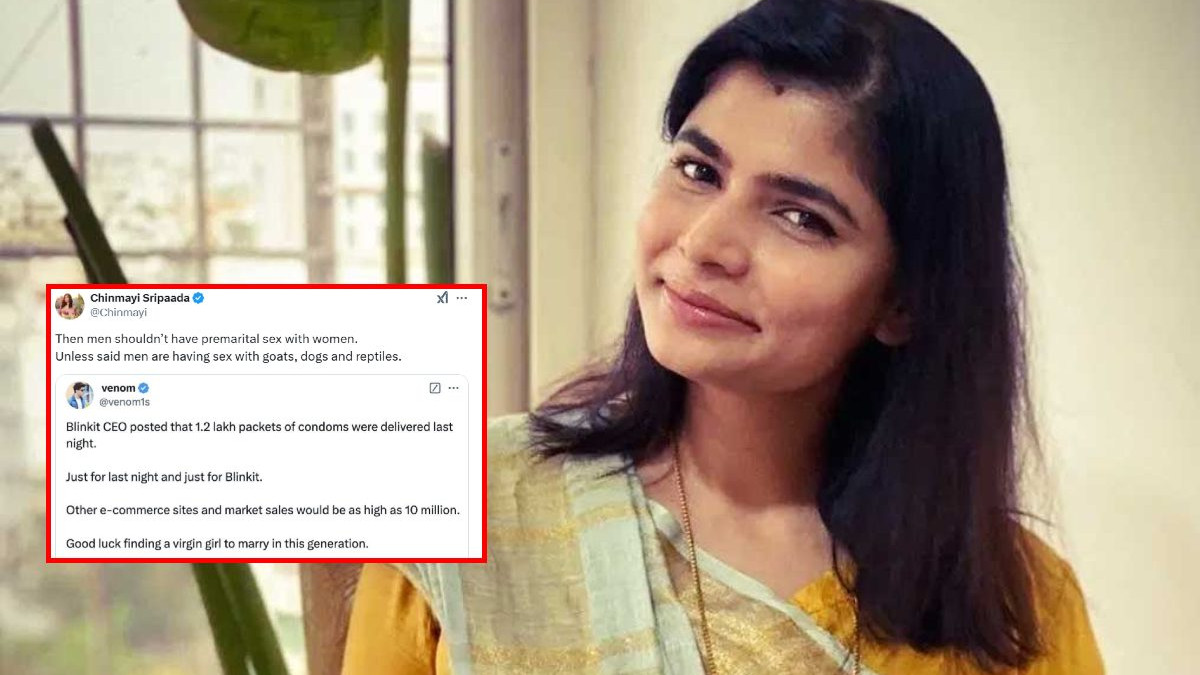 एक्स यूजर का ये पोस्ट पढ़कर चिन्मयी ने मुंह तोड़ जवाब देते हुए रिप्लाय दिया- 'तो पुरुषों को महिलाओं के साथ शादी से पहले यौन संबंध बनाने की इजाजत नहीं देनी चाहिए। वो बात अलग है कि अगर वह जानवरों के साथ संबंध बनाने के लिए कंडोम खरीद रहे हैं'।