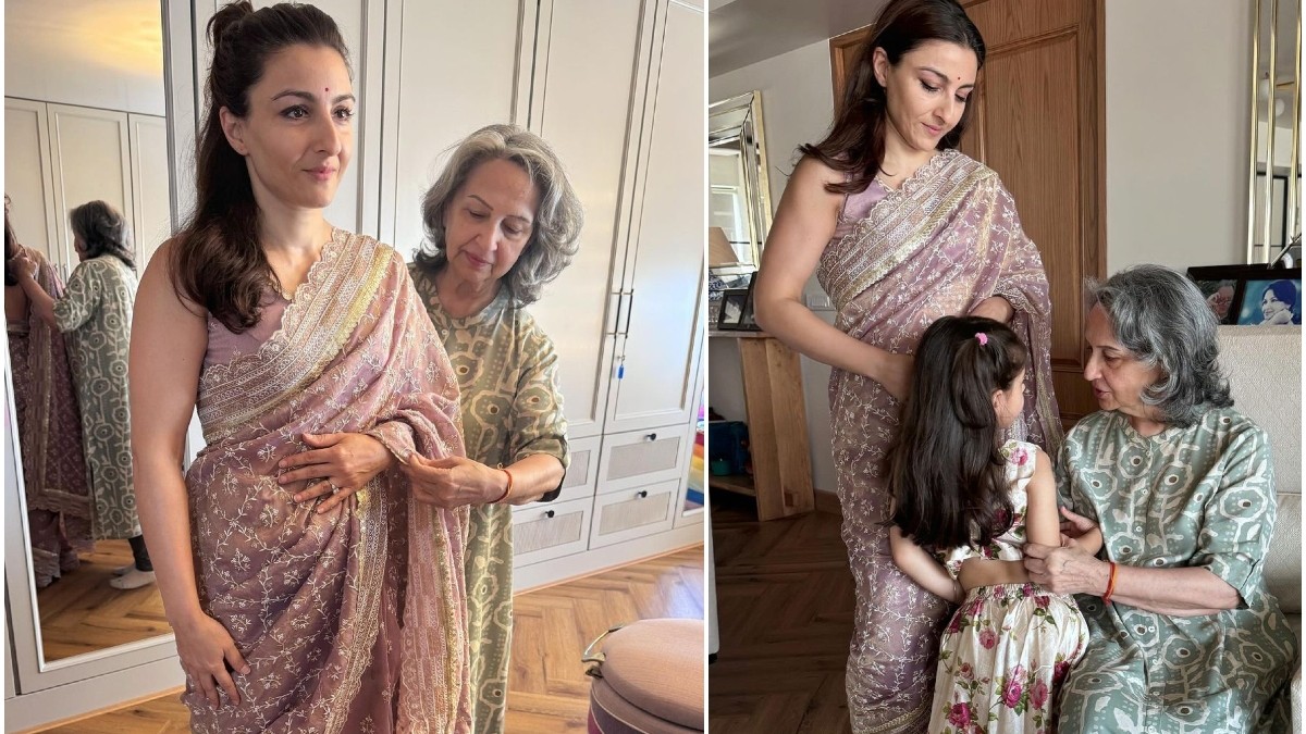 PHOTO: महिला दिवस पर एक्ट्रेस सोहा अली खान ने मां शर्मिला टैगोर से सीखा साड़ी बांधना, बेटी इनाया के साथ की मस्ती