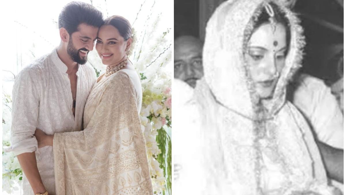 आपको बता दें, सोनाक्षी ने अपनी शादी में जो साड़ी पहनी हुई थीं, वो साड़ी उनकी मां के शादी की थीं। जब पूनम सिन्हा ने शत्रुघ्न सिन्हा से शादी की थी तो क्रीम कलर की यही साड़ी पहनी थी। वहीं एक्ट्रेस ने भी अपनी शादी पर यही साड़ी पहनी थी। एक्ट्रेस ने शादी के दिन सिर्फ मां पूनम सिन्हा की विंटेज साड़ी ही नहीं बल्कि ज्वेलरी भी पहनी थी। गले में चॉकर हार, कानों में स्टड पहने थे। वहीं हाथों में गोल्डन कलर के कंगन पहने नजर आईं। इतना ही नहीं लोग एक्ट्रेस के मेकअप की भी तारीफ कर रहे हैं। सोनाक्षी ने इस खास मौके पर अपना पूरा लुक मिनिमल मेकअप से पूरा किया था।