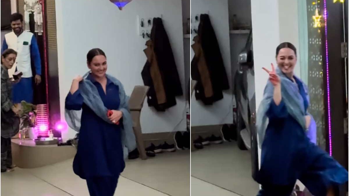 सामने आए इस वीडियो में आप देख सकते हैं कि सोनाक्षी सिन्हा अपने घर के अंदर जाती हुई दिखाई दे रही हैं। इस बीच उन्होंने ब्लू कलर का सूट पहना हुआ है। इस वीडियो में एक्ट्रेस के पीछे उनकी मां पूनम सिन्हा भी नजर आ रही हैं। वहीं जैसे ही सोनाक्षी की नजर कैमरे पर पड़ती है, तो वो इठलाती, मुस्कुराती हुईं विक्ट्री का सिंबल दिखाते हुए अपने हाथ में रची मेंहदी को फ्लॉन्ट करने लग जाती हैं। इस दौरान सोनाक्षी काफी खुश दिख रही हैं और उनके चेहरे पर वेडिंग वाला ग्लो भी साफ दिख रहा है।