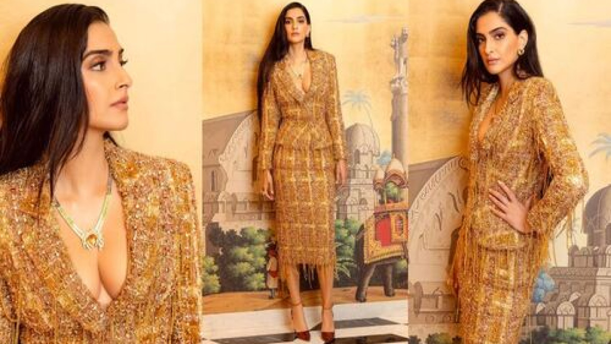 इस आउटफिट में सबसे खास बात यह थी गोल्डन ड्रेस के साथ गोल्डन हील्स और गहनों ने इस लुक को और भी स्टाइलिश बना दिया था। सोनम ने अपने एक्सेसरीज़ को बेहद सलीके से चुना था, ताकि उनका आउटफिट ही स्टार बनकर चमक सके।